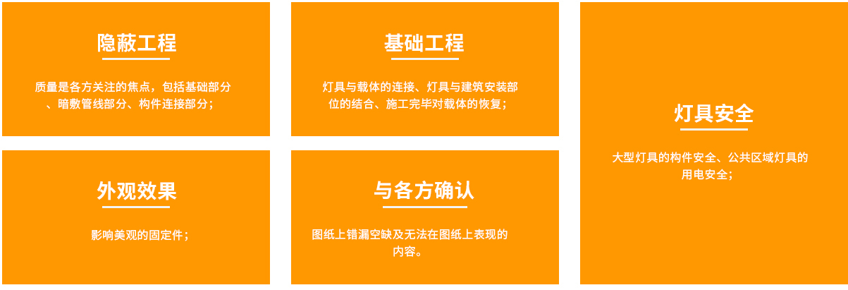 4.1.2、施工難點交底燈具器件交底; 燈具安裝交底;照明控制類型;使用與維護等控制性要求。